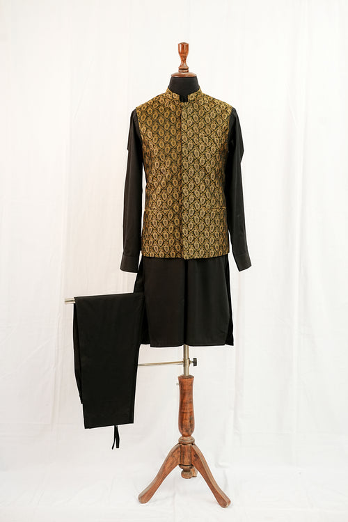TEXTURED BROWN FRONT POCKET KURTA TROUSER -